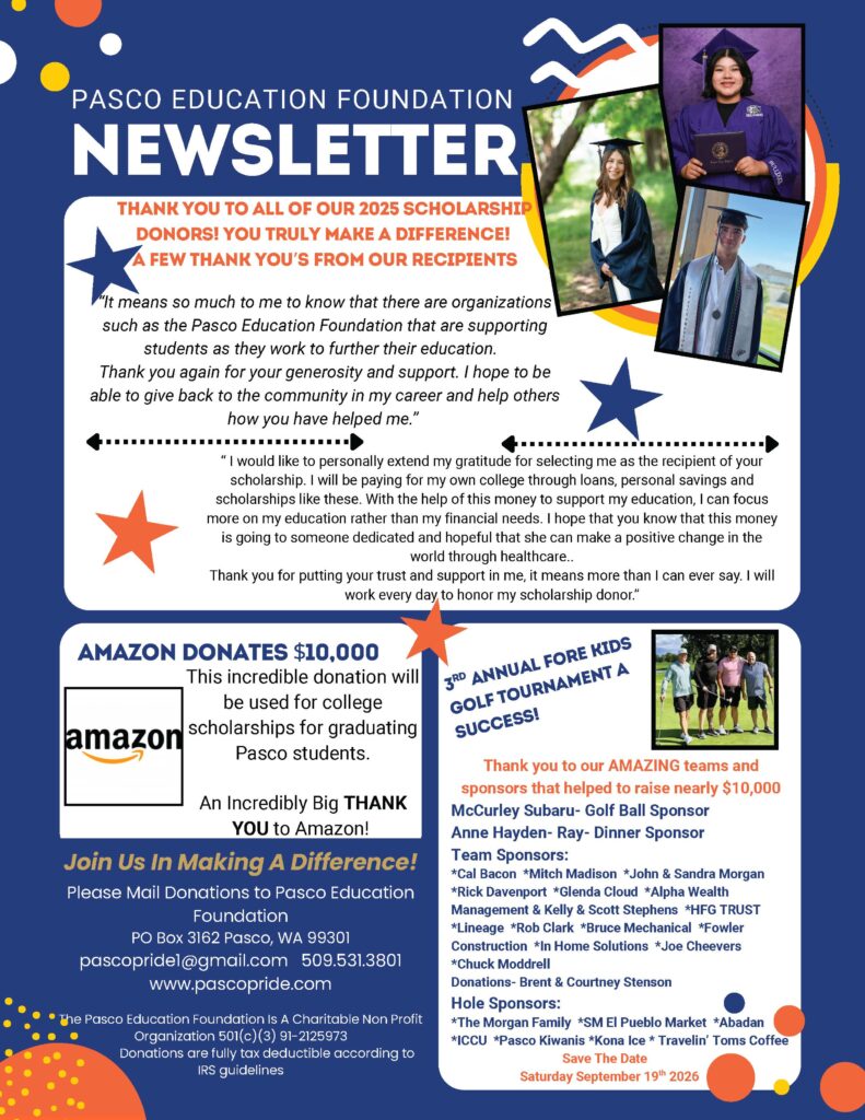 The Pasco Education Foundation (PEF), is a non-profit volunteer organization dedicated to enhancing educational opportunities for Pasco School District students and graduates…